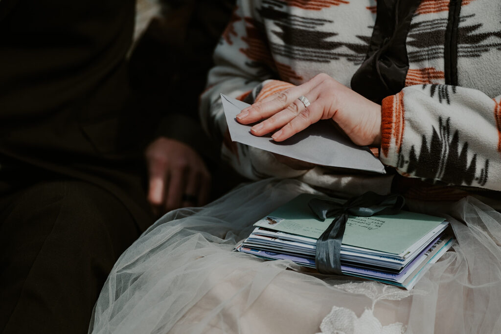Before your elopement, you can ask your loved ones to write letters or record personal videos for you to read / watch on your elopement day. Sitting down to absorb congratulatory sentiments and well wishes is an immensely satisfying and emotionally fulfilling way to spend some time together after you’ve officially tied the knot. This is hands down one of my favorite ways for couples to include others in their day. You still get the private, intimate wedding you’ve always dreamed of while your friends and family can take part in that experience in a truly meaningful way. You’re allowed to laugh, cry, and wholly be yourself while you take it all in without feeling the need to perform for anyone.